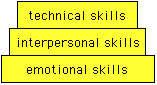 Emotional skills, he said, were most important. Without emotional skills the interpersonal skills cannot be used to most effect. And without interpersonal skills the technical skills may be wasted. Emotional skills are a necessary foundation for interpersonal skills, which in turn are needed to make the most of technical skills.
